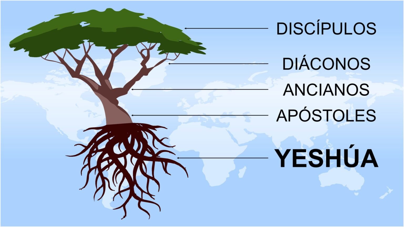 En este modelo, Yeshúa es la raíz (soporte), los apóstoles son el tronco, los ancianos son las ramas, los siervos (diáconos) son las ramitas y el pueblo es la hoja. Todas las partes del árbol trabajan para enviar los buenos nutrientes y la humedad que la raíz extrae, a las otras partes del árbol. El diezmo es la savia que circula, nutriendo todas las partes del árbol, y manteniendo los nutrientes y la humedad que se impulsan hacia las hojas.