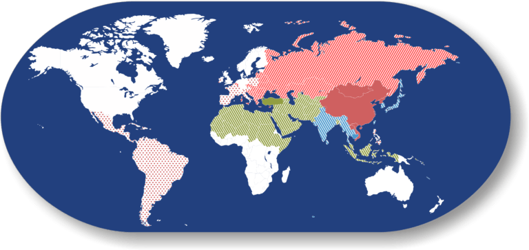 Esaú no se centra en Yahweh, sino en otros hombres. Por eso el espíritu de Esaú valora cosas como la democracia, donde se busca la opinión de los hombres (en lugar de la opinión de Elohim). Así como los lazos de sangre son rojos, el caballo de Esaú es rojo. Los países de color rojo sólido en el mapa representan los países comunistas o socialistas. Sin embargo, los países que tienen una mezcla de comunismo o socialismo y cristianismo de caballo blanco son mixtos. Por ejemplo, la franja roja de la derecha en el mapa representa la ortodoxia oriental, mientras que los puntos rojos en el mapa representan el catolicismo romano. (E incluso en los países de color rojo sólido, todavía hay algunos creyentes del caballo blanco).