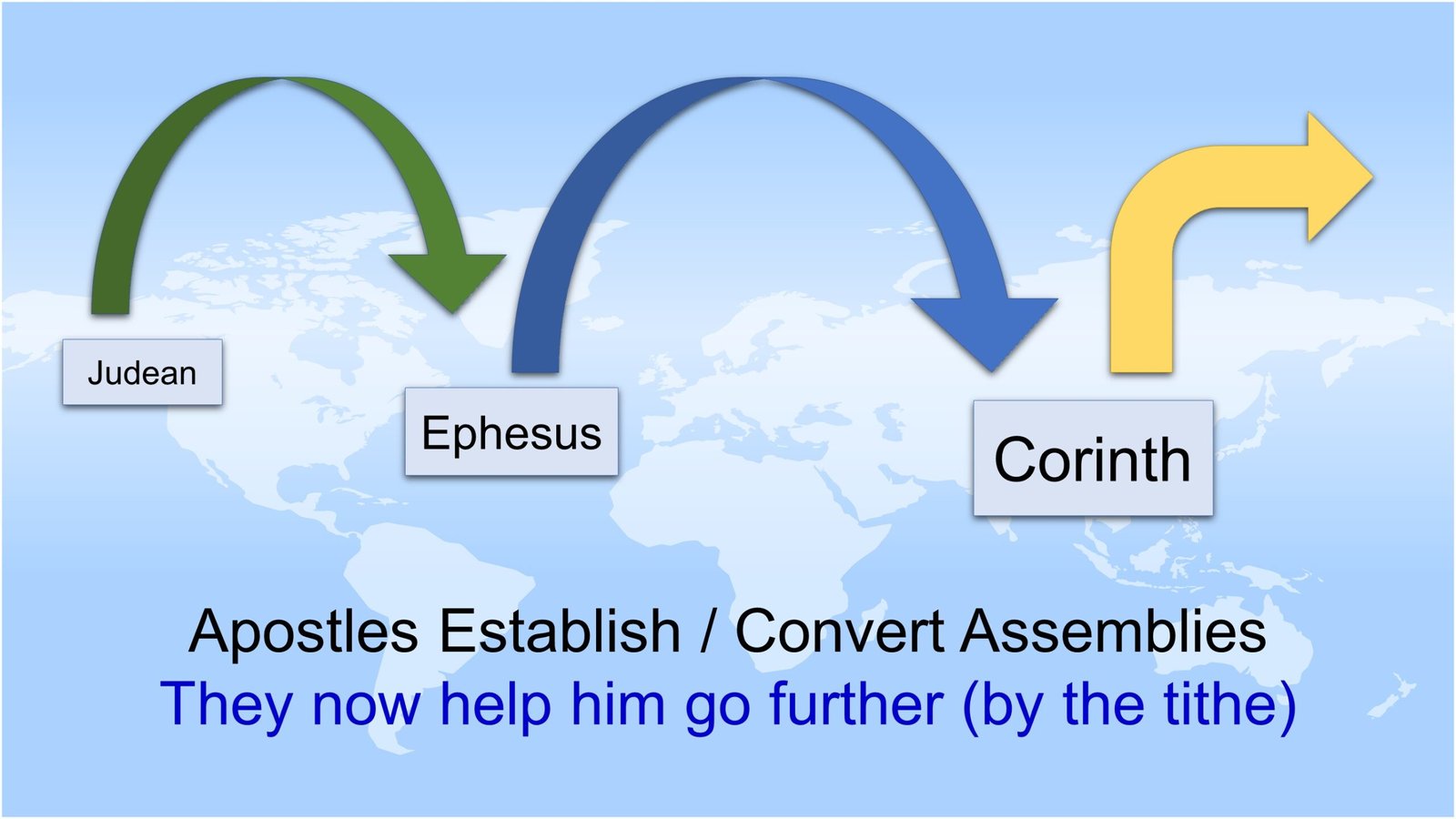 El trabajo de un apóstol es convertir o levantar asambleas. Una vez iniciada la asamblea deben reconocer al menos una pareja de ancianos (e idealmente tres o más parejas) que puedan servir de ejemplo para el rebaño en su ausencia. Luego pueden ir a la siguiente ciudad.