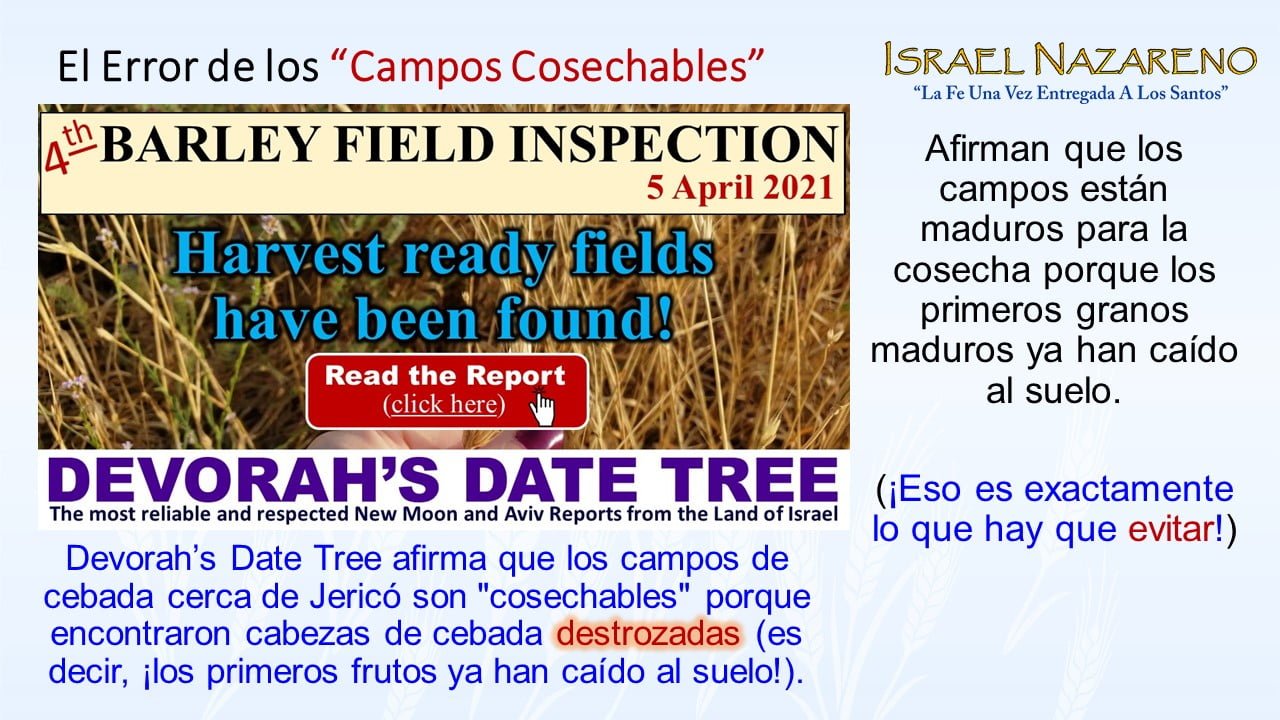 Así que, quedé estupefacto cuando leí este informe que fue publicado el 5 de abril. Devorah’s Date Tree afirmó que sabía que “los campos de cebada cerca de Jericó eran cosechables porque habían encontrado cabezas de cebada destrozadas”. En otras palabras, ¡las primicias de la cebada ya habían caído al suelo! Me sorprendió, me dejó atónito. Porque eso es exactamente lo que queremos evitar.