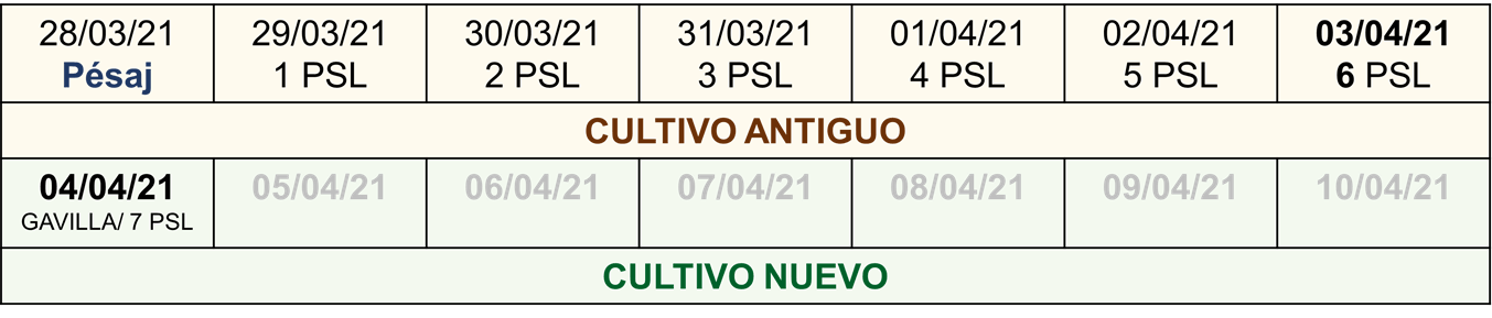 Por lo tanto, la matzá de Pésaj, como dijimos, debe ser hecha de la vieja cosecha. También hay que tener en cuenta que la ofrenda de la Gavilla Mecida que es traída debe ser aviv kalui fresca, tierno, joven y verde al sacerdocio en Yom HaNafat HaOmer (el día de la ofrenda de la gavilla mecida) ¡Pero atención! Eso no significa automáticamente que la cosecha principal vaya a estar madura. Además, no significa automáticamente que toda la nación hiciera su matzá (su pan sin levadura) de la nueva cosecha.