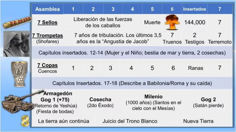 – Las copas del juicio (tazones) se desarrollan durante 30 días (nacimiento del Israel redimido).