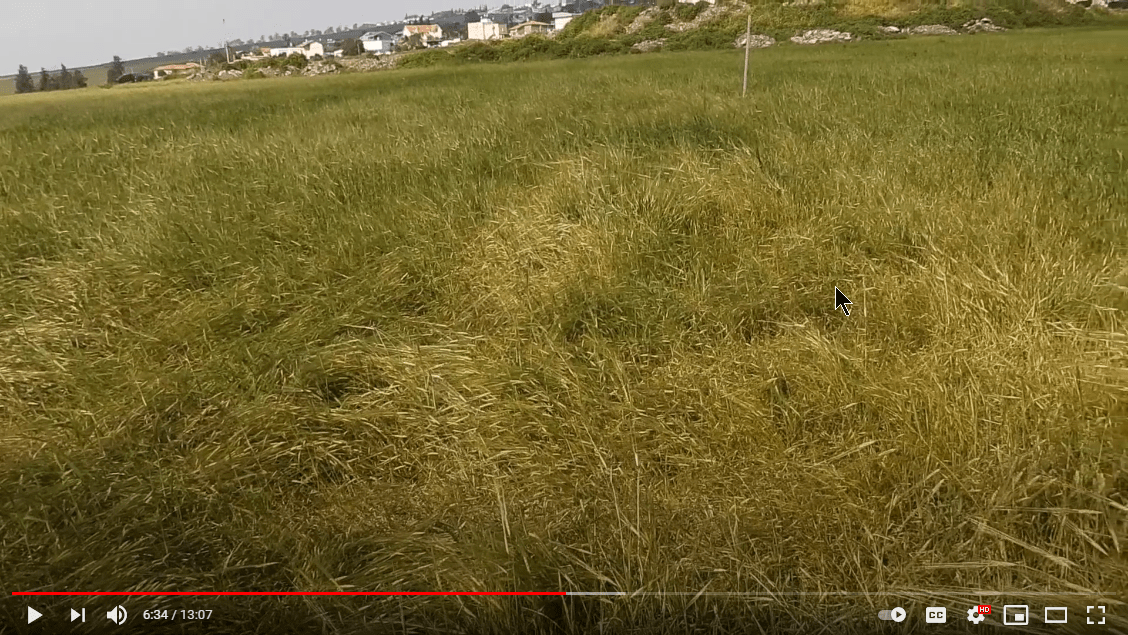 Pues bien, hemos hecho un video llamado Cebada destrozada en Migdala. El 19 de marzo, Becca Biderman encontró montones de Cebada destrozada en Migdala, Israel. Esto fue un día antes del equinoccio de primavera del 20 de marzo. Aquí hay una foto de la cebada destrozada, esto es exactamente lo que no quieres. Esto es exactamente lo que se intenta evitar y es que la cebada esté en el suelo. Así que, quiero decir, ese es el objetivo de una ofrenda de gavilla mecida, es despejar el camino para la cosecha para que este tipo de cosas no ocurran. Aquí tenemos la cebada rota y destrozada en el suelo al menos dos semanas y dos días antes de la Ofrenda de la Gavilla Mecida Caraíta del 4 de abril del 2021.