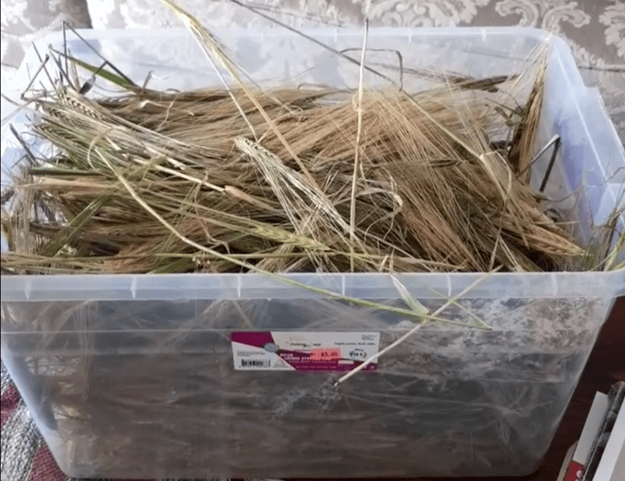 Así que, después de haber encontrado cebada aviv el día 6 de febrero, unos 15 días después, el 21 de febrero, la hermana Becca Biderman y su ayudante, Cindy, cosecharon un cubo de cebada del campo de Poriya Illit.