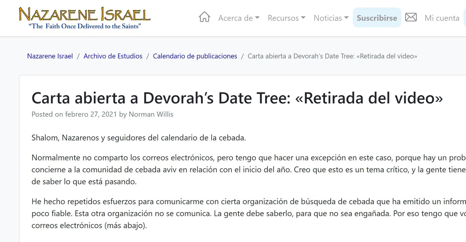 Así que, basándonos en eso, publicamos un informe que llamamos “Informe de la Cebada Caraíta Imparcial” y, por supuesto, como se puede sospechar, Devorah’s Date Tree nos escribió para exigirnos que quitáramos el video. Lo hicimos, pero no sin protestar.