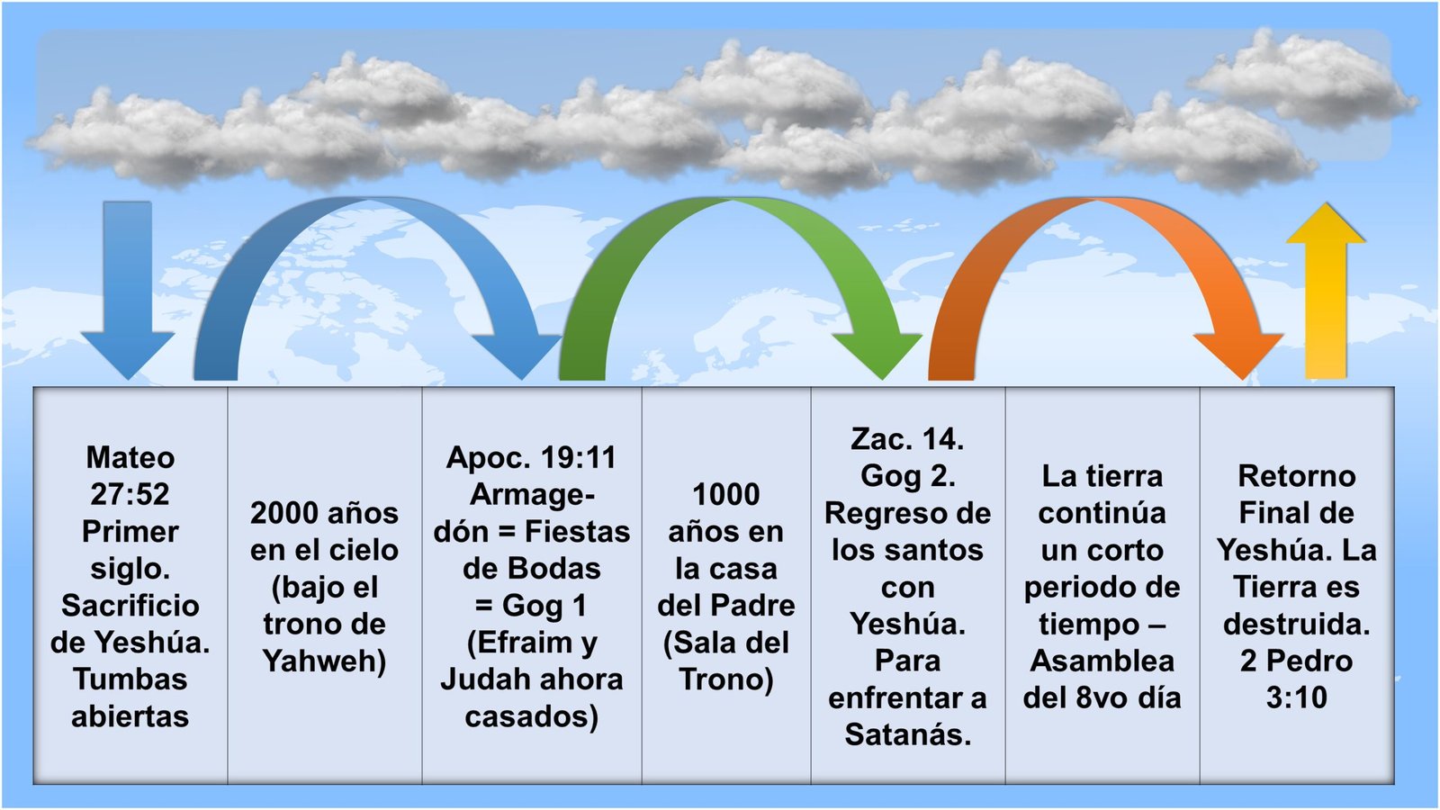Antes aprendimos que, después de la primera guerra de Gog y Magog (Armagedón), Yeshúa tomará consigo a todos Sus seguidores que estén dormidos (muertos). Del mismo modo, cuando regrese al cielo después de la segunda guerra de Gog y Magog, llevará consigo a todos Sus seguidores que se durmieron (murieron) durante el milenio. Entonces, básicamente, cada vez que viene Yeshúa, Él toma a Sus seguidores que están durmiendo, para estar con Él.