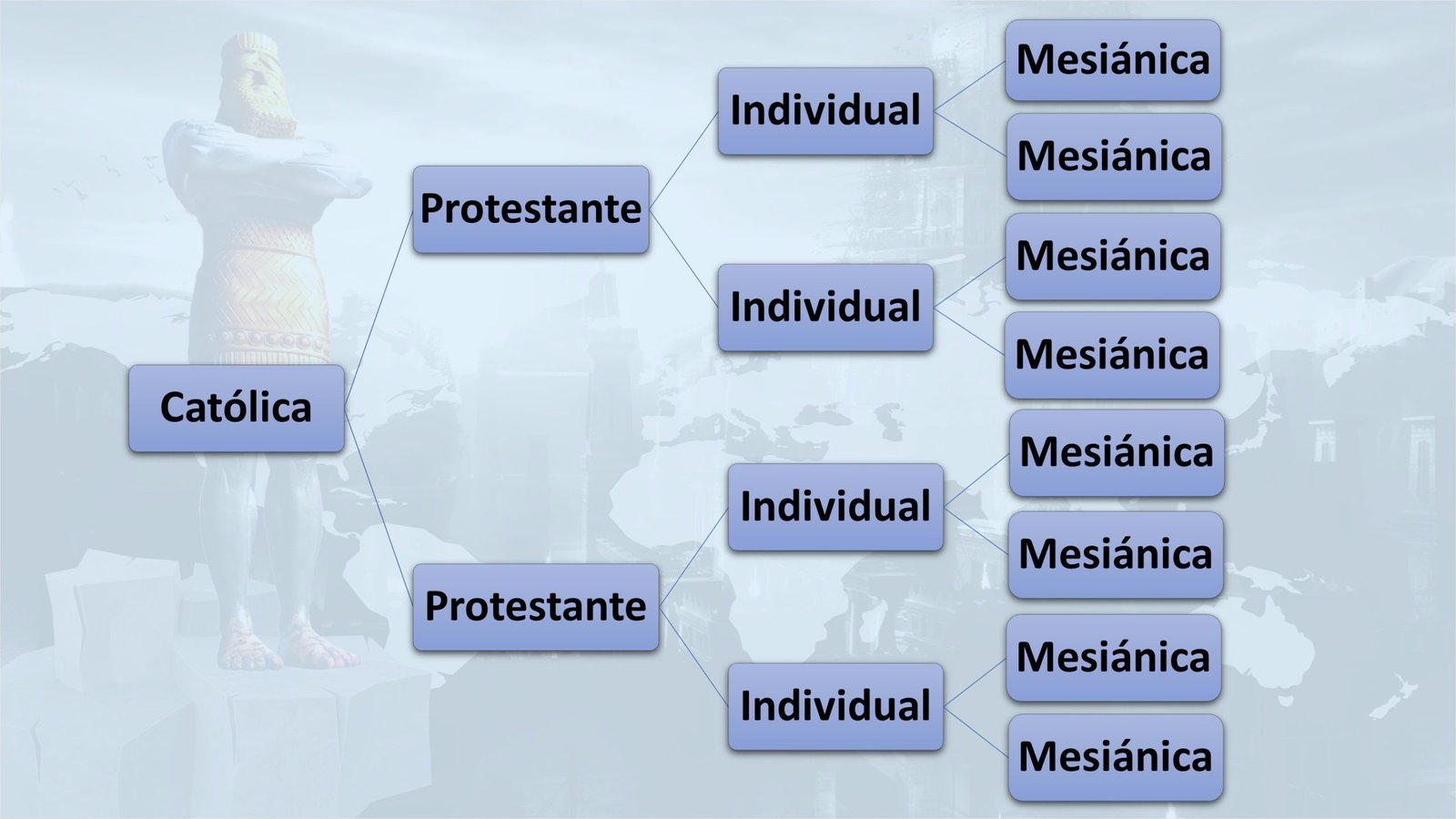 Si convertimos el gráfico anterior en un diagrama de líneas, podemos ver cómo el Israel mesiánico es sólo el último de una serie de teologías satánicas de sustitución.