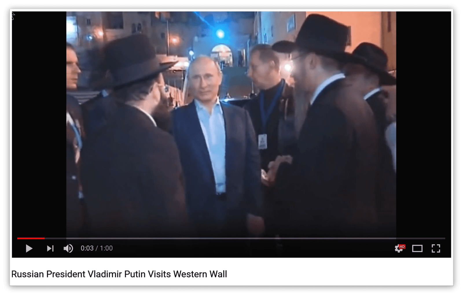 Aquí está de nuevo el presidente ruso Vladimir Putin en el Muro Occidental en 2012, diciendo a la gente que vino a rezar para que el templo sea reconstruido.