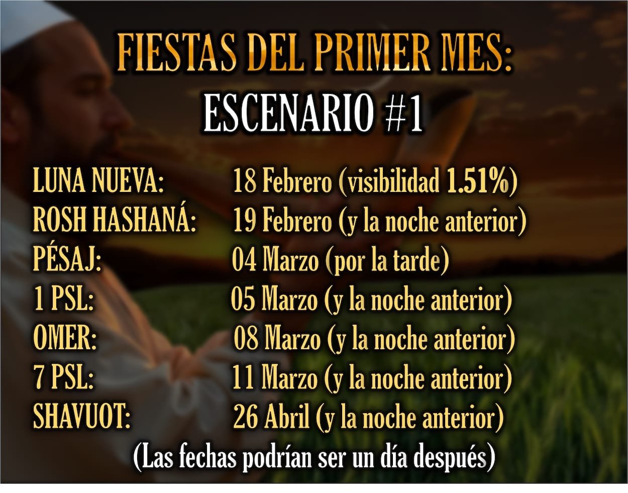 A continuación se presentan dos escenarios para Rosh HaShaná 5786/2026. (Las fechas pueden variar dependiendo de la confirmación del avistamiento de la luna nueva o del plazo predeterminado de 30 días). Los informes procedentes de Israel indican que el escenario 1 es poco probable. A fecha de 13 de febrero, no hay lino en la Tierra de Israel, ni cebada legítima con espigas fructíferas. El escenario 2 parece más probable. Lea la publicación para obtener todos los detalles y manténgase al día en las NCT para conocer