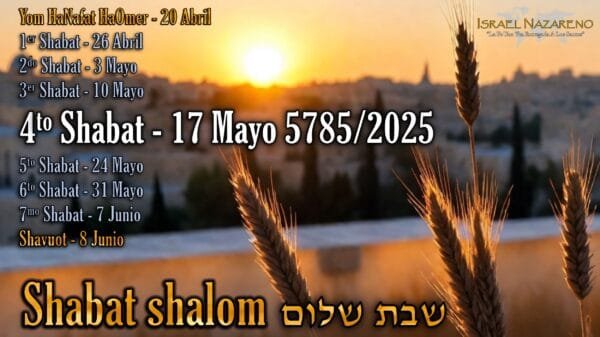 Recordatorios de fiestas: Cuenta hasta Shavuot (Pentecostés) – 4to Shabat: 17 Mayo 5785/2025 – ¡Shabat shalom!