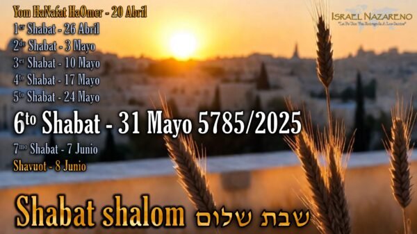 Recordatorios de fiestas: Cuenta hasta Shavuot (Pentecostés) – 6to Shabat: 31 Mayo 5785/2025 – ¡Shabat shalom!