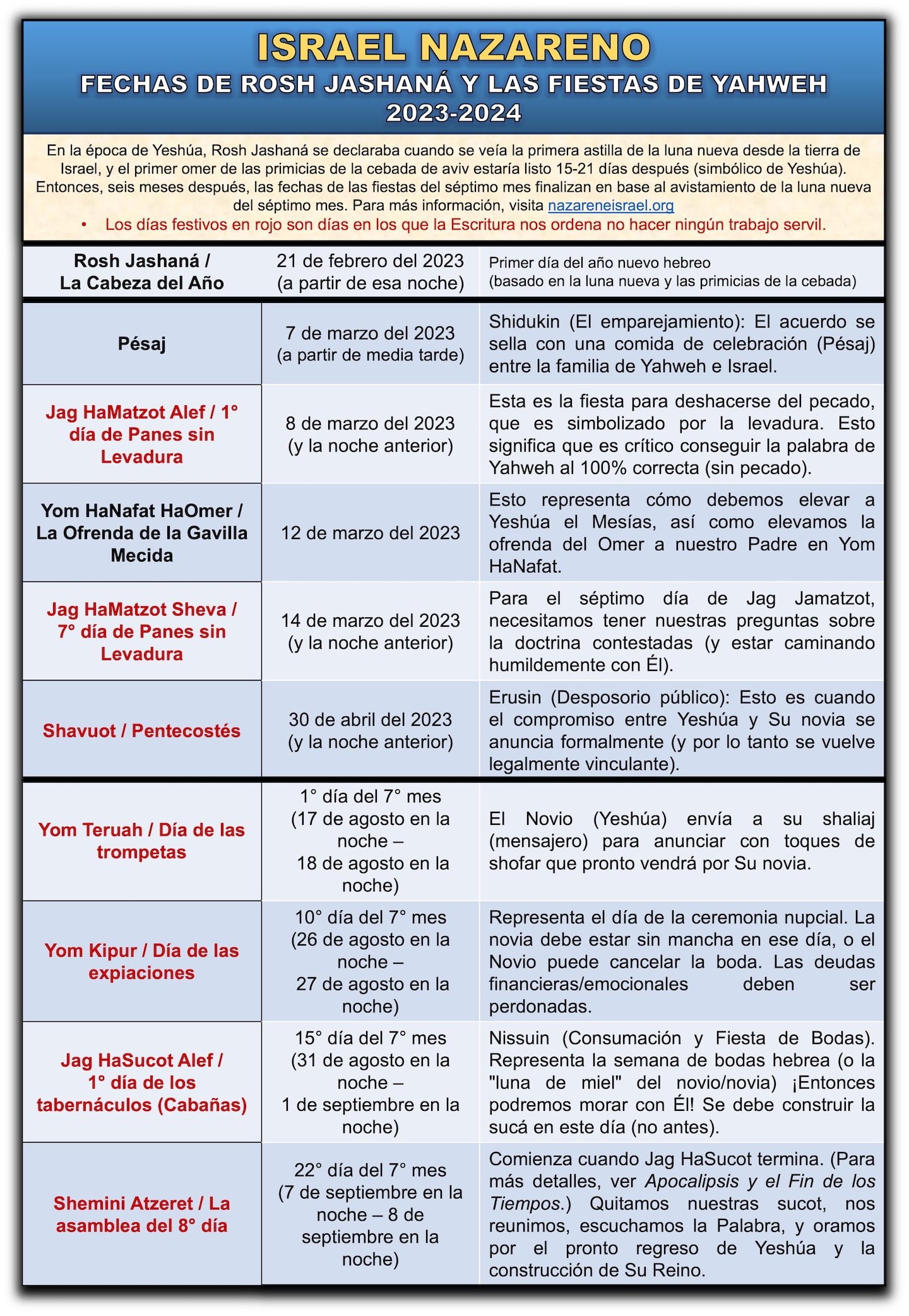 Israel Nazareno – Fechas de Rosh Hashaná y la Fiesta de Yahweh 2023-2024