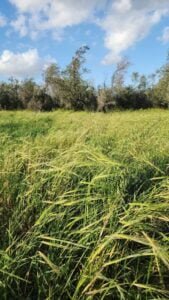 Abajo, un campo o avena silvestre en la tierra de Israel. El significado es que existe la posibilidad de que haya cebada en la tierra de Israel. Imagen cortesía de la hermana Becca Biderman, Israel.