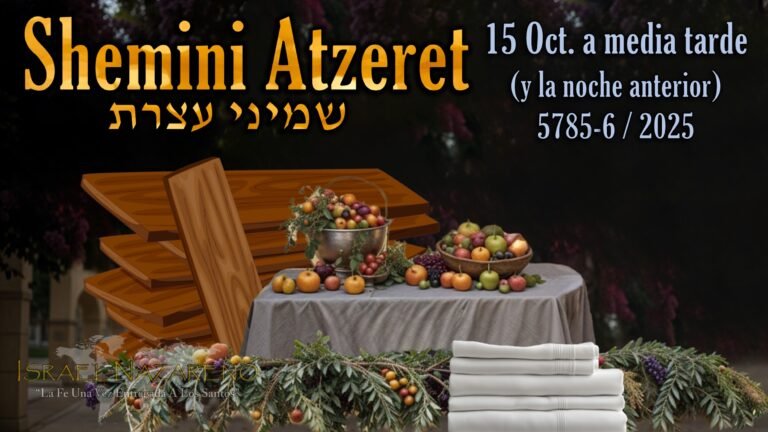 La tarde del 23 de septiembre de 2025 comenzó el séptimo mes hebreo. Shemini Atzeret 5786/2025 (o la Asamblea del Octavo Día) es en la tarde del 15 de octubre. ¡Jag sameaj!